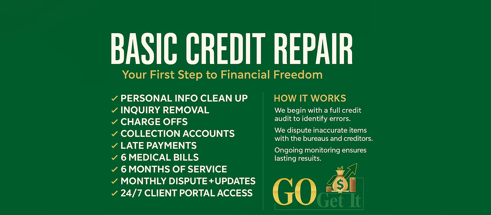 At Go Get It we don’t just repair credit we empower our clients to take control of their financial future. Our personalized approach, expert knowledge, and commitment to results set us apart. We offer clear, actionable plans that are tailored to your unique financial situation, ensuring fast, effective solutions.